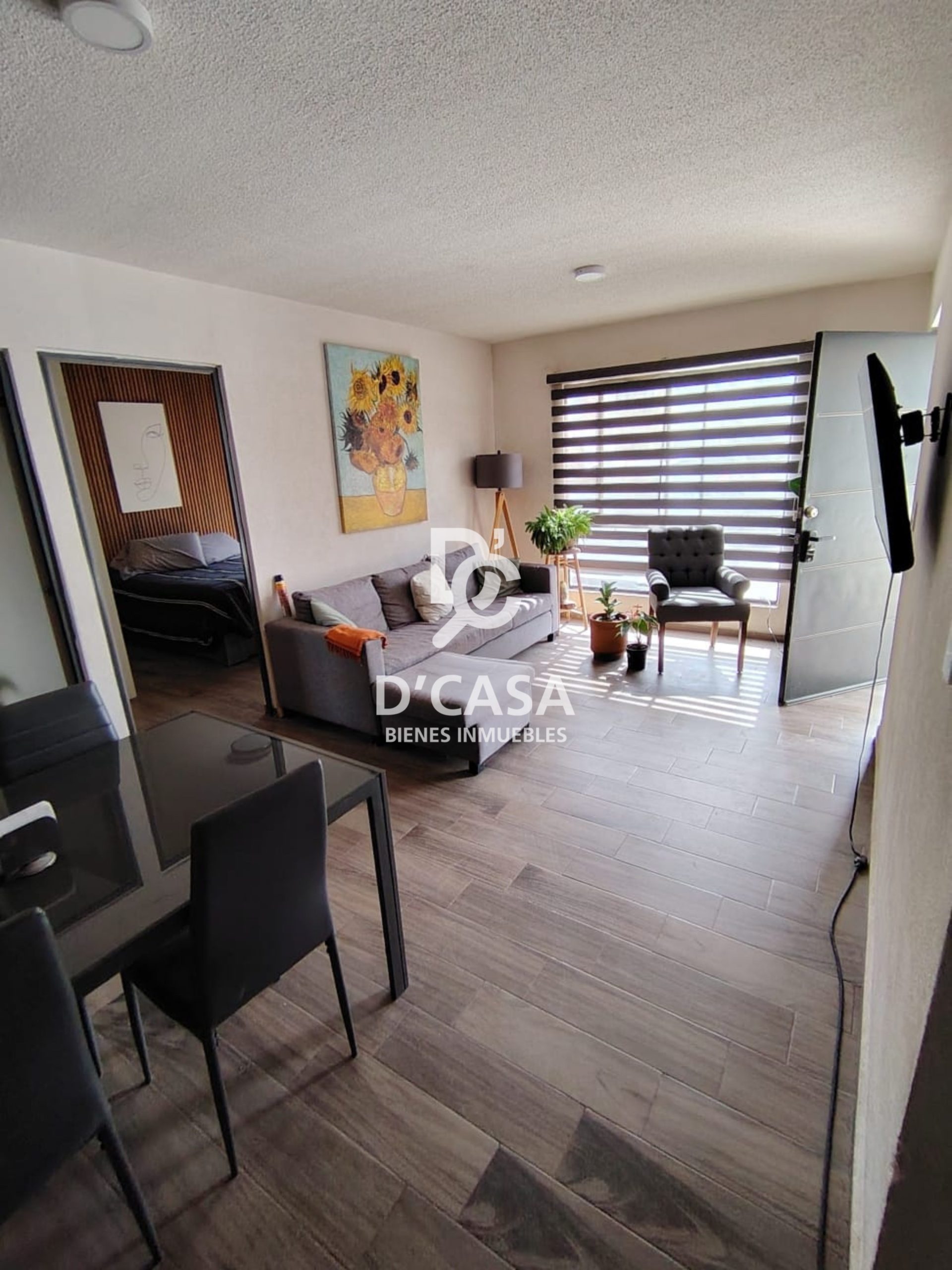 Ubicado en planta baja cuenta con 2 recámaras con cama matrimonial, 1 baño completo, cocina integral con microondas, refrigerador, sala comedor, patio de servicio y pequeño jardín.
