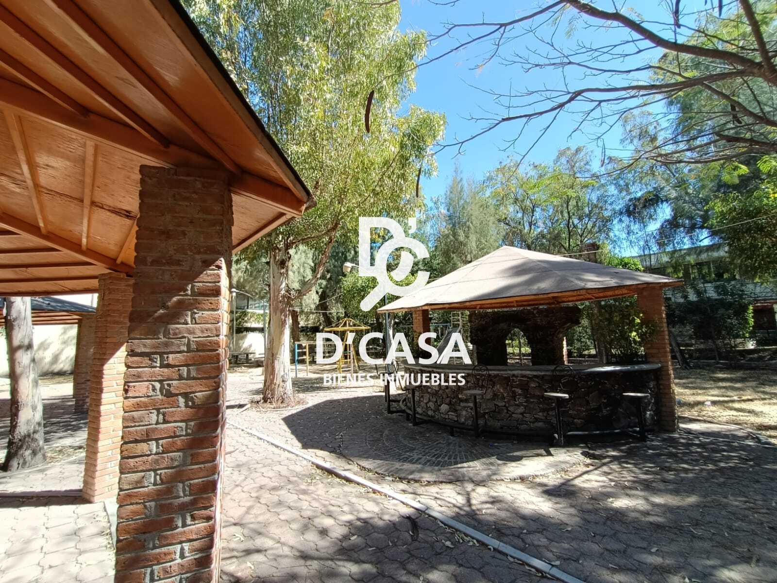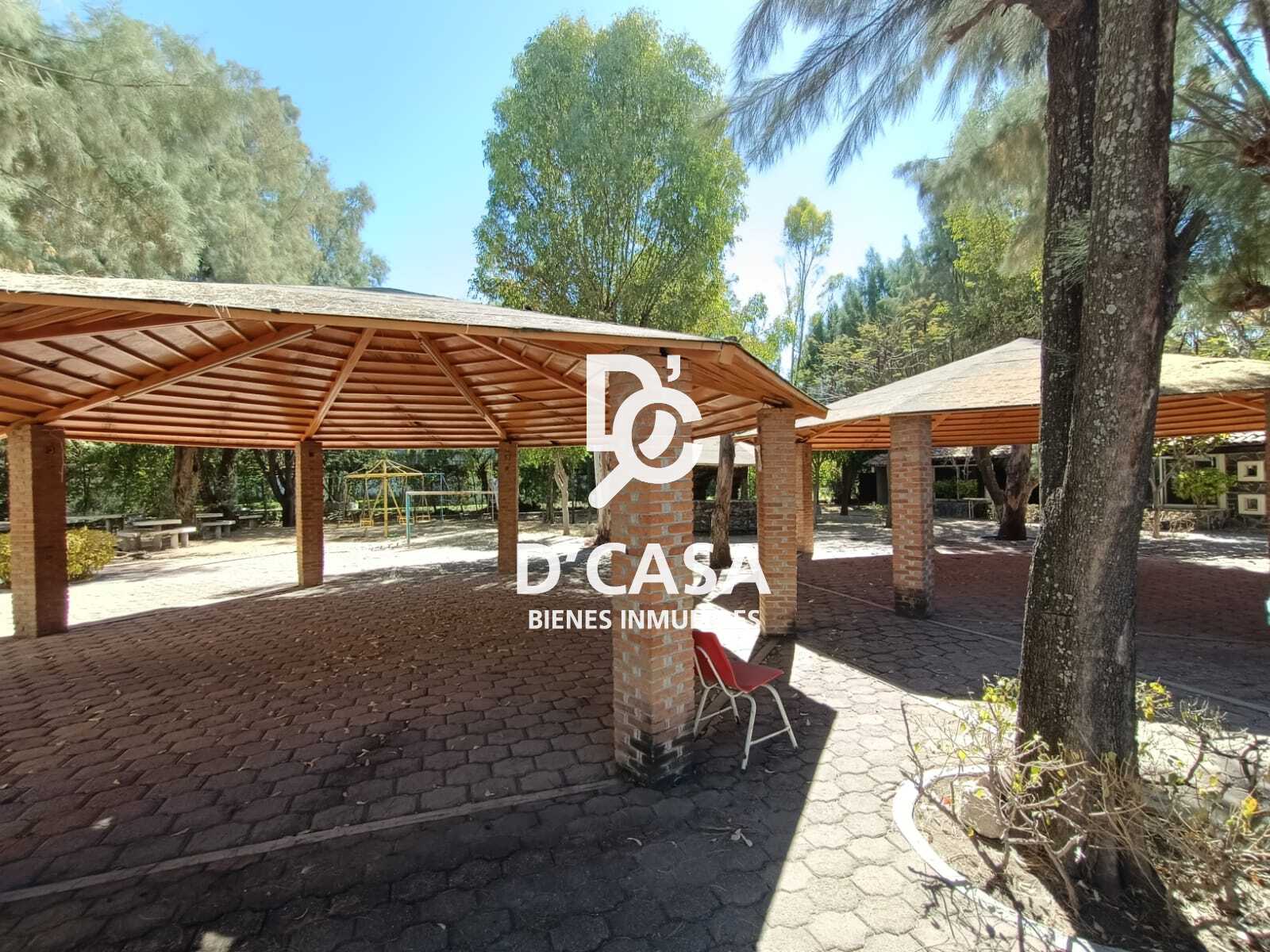 Tiene un área libre de estacionamiento para 70 autos aproximadamente, cuenta con un área para eventos, tipo campestre; con palapas, mesas, una cabaña, baños, asadores. A un costado se encuentra una explanada con cancha de básquet.